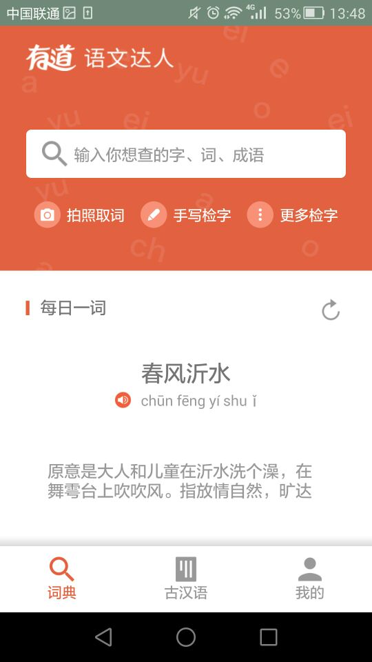有道語文達人的前身是有道推出的漢語字典,目前,有道語文達人目前可以支持多種查詢模式,當(dāng)用戶在語文學(xué)習(xí)中遇到生僻字詞,可以通過手寫、拍照、拼音、部首、筆畫等多種渠道進行查詢,官方稱,有道語文達人收錄了超過500萬的字詞以及課內(nèi)外的古詩文。