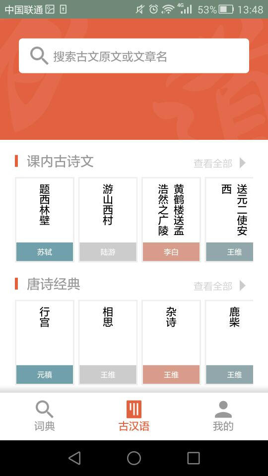 剛進入有道語文達人時,用戶需要根據(jù)自己所處的學(xué)習(xí)階段做出選擇,有道語文達人主要覆蓋了從小學(xué)一年級到高三的所有課內(nèi)古詩文,并且為學(xué)生提供課內(nèi)古文+課外拓展/中高考考點。