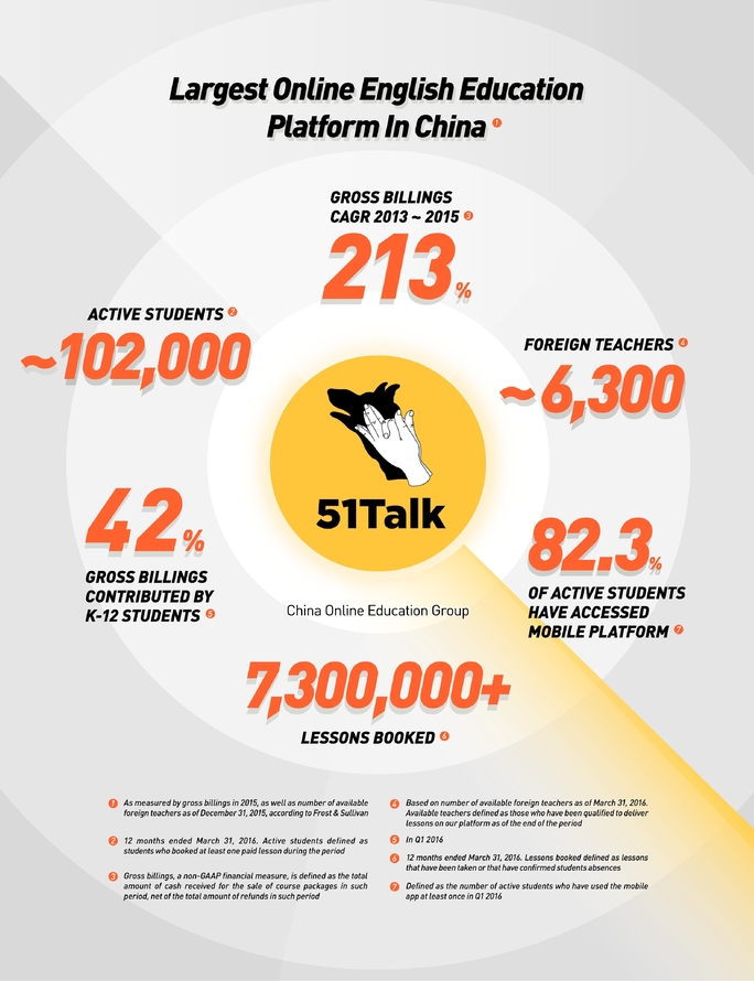 多知網(wǎng)5月13日消息,今日凌晨,一家英文名為“China Online Education Group”的公司遞交IPO招股書,經(jīng)查閱,才恍然發(fā)現(xiàn)這家翻譯中文名為“中國在線教育集團(tuán)”的公司就是大家熟知的51Talk,難怪51Talk要趕在VIPABC之前IPO。