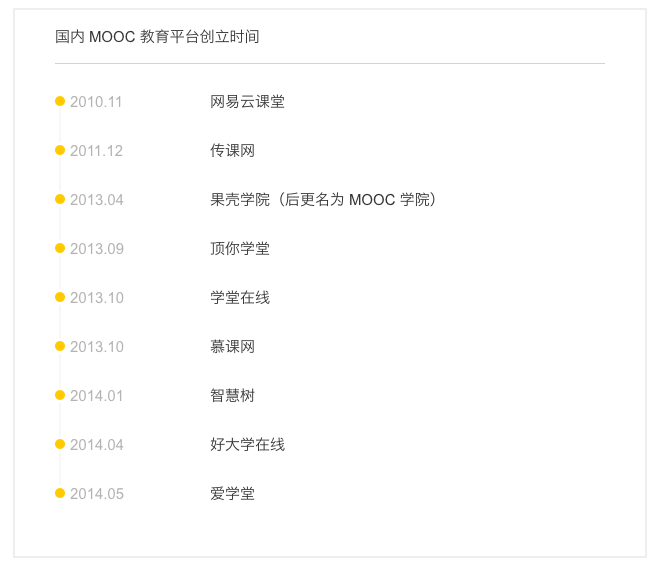大部分國內(nèi) MOOC 平臺,都是 2013 年到 2014 年建立的,例如果殼的 MOOC 學(xué)院、開課吧、清華大學(xué)做的學(xué)堂在線,網(wǎng)易做的中國大學(xué) MOOC 等等。