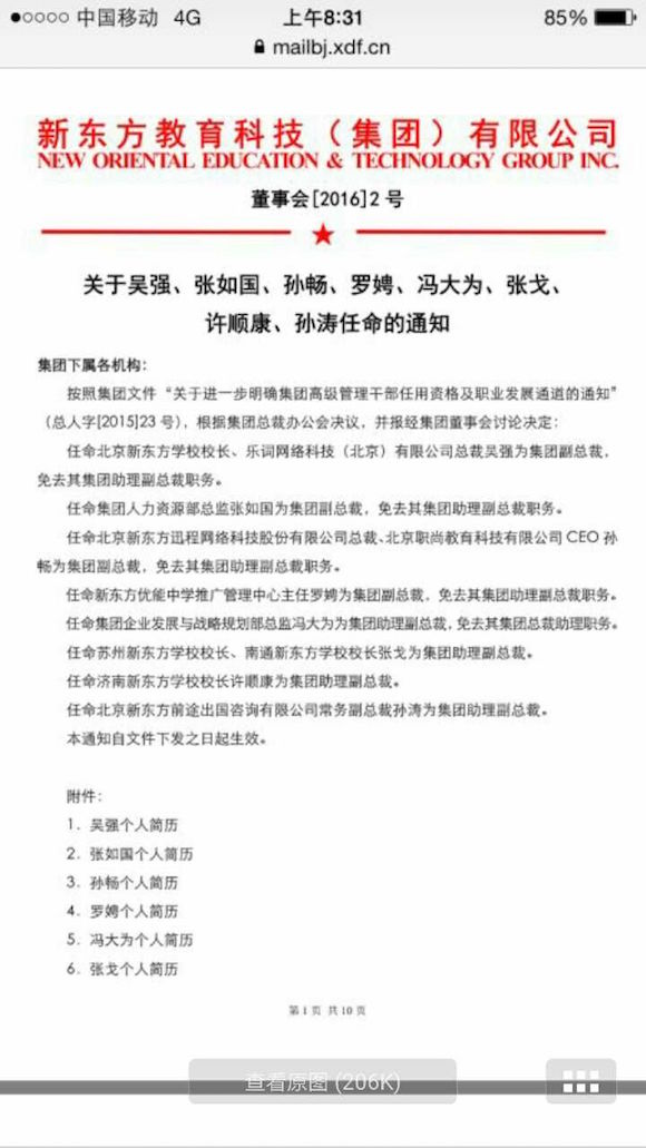 這是新東方繼去年4月初發(fā)紅頭文件宣布任命多位助理副總裁之后,第二次大規(guī)模宣布副總裁的任命消息。