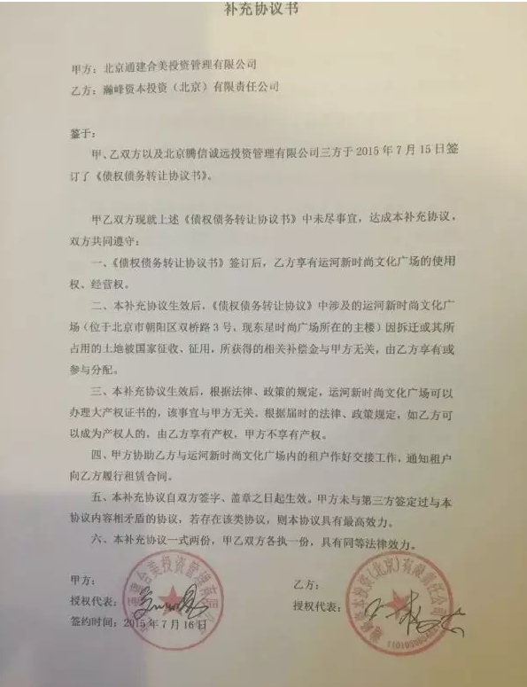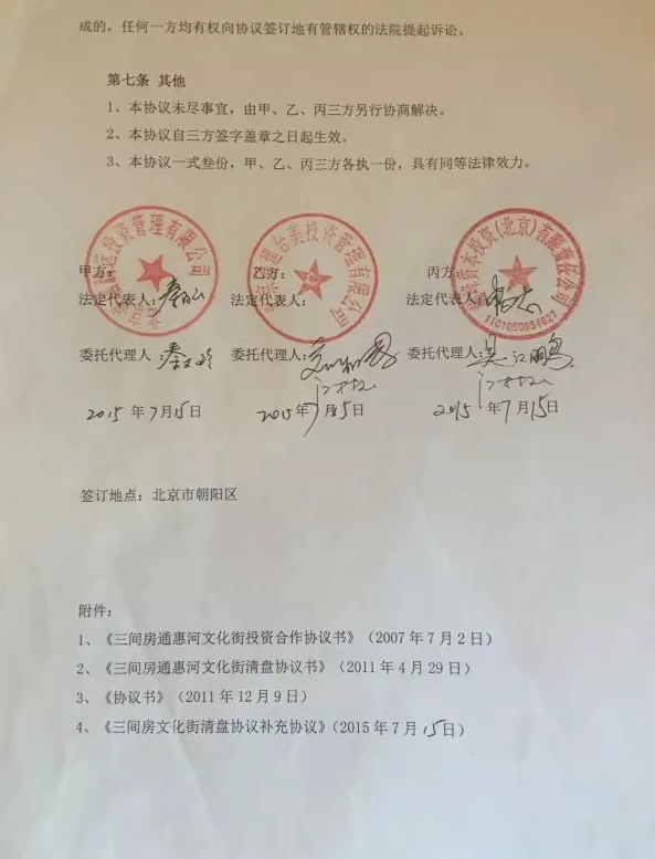 首先,聚智堂前董事長楊志以及現(xiàn)任董事長劉源長,都沒有攜款潛逃,所有學費都用于學校全國范圍的擴建,以及我們于2015年7月收購了北京東星時尚廣場,擁有其使用權、經(jīng)營權、收益權物業(yè)管理權,所有合同手續(xù)齊全,此大廈市值遠遠覆蓋全國范圍家長們的退費總額。因此根本不存在資不抵債或攜款潛逃。大家想想一個想攜款潛逃的人會去買一個不動產(chǎn)嗎 ?問題根源在于瞬間的擠兌造成現(xiàn)金流緊張。(圖1:三方協(xié)議中的一份補充協(xié)議;圖2:2015年10月聚智堂校慶)