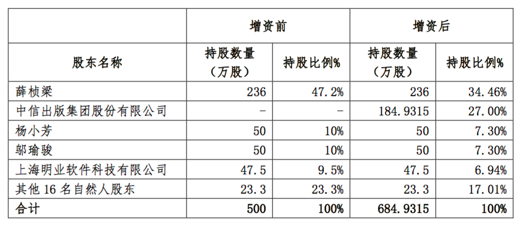 增資完成后,中信出版將持有財金通股份184萬9315股,占股27%。