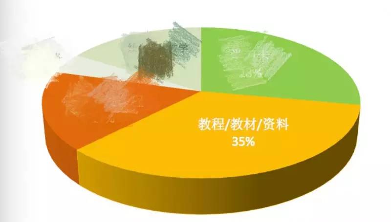 ?。▓D一:2013年某月教程教材資料占教育培訓(xùn)類目的交易額比例)