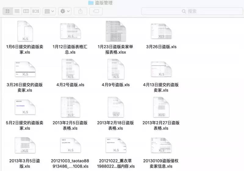 ?。▓D二:電腦中找到的當(dāng)年人工為機(jī)構(gòu)處理盜版商品的表格)