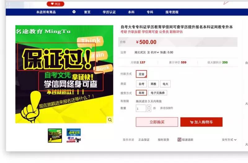 除了盜版,你也必須要清楚的知道有哪些商品也是違規(guī)的,比如“真題、必過、協(xié)議保過、課后即更新、學(xué)信網(wǎng)可查”等等關(guān)鍵詞的商品絕大多數(shù)是違規(guī)?。▽W(xué)信網(wǎng)可查的所謂學(xué)歷考試培訓(xùn),大多數(shù)就是代考或假證,淘寶網(wǎng)安部門有專業(yè)的人曾經(jīng)蹲點(diǎn)了解過,因?yàn)檎?guī)學(xué)歷當(dāng)然學(xué)信網(wǎng)可查,把這個(gè)作為商品圖片重點(diǎn)標(biāo)注就是“此地?zé)o銀三百兩”)