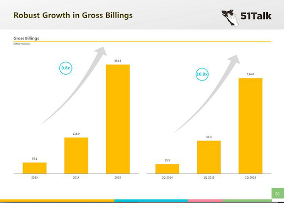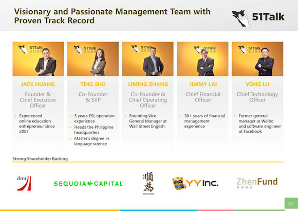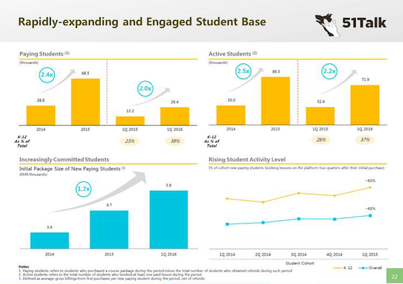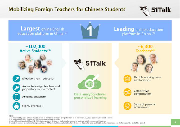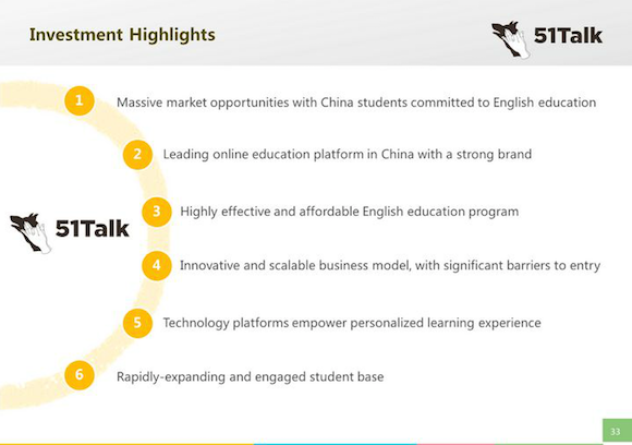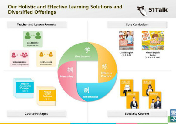 提出在線教育平臺(tái)概念,并且舉出阿里巴巴、攜程的例子,可以看出,51Talk希望用相似的互聯(lián)網(wǎng)產(chǎn)品的成功案例做概念背書。