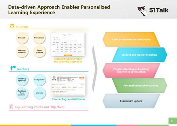 51Talk的系統(tǒng)性方法,主要包括數(shù)據(jù)驅(qū)動(dòng)的銷售和市場(chǎng)策略、個(gè)性化且更加有效的過程、成體系的教師培養(yǎng)制度。
