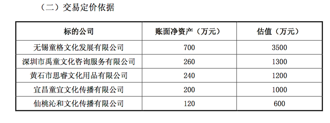 標(biāo)的公司估值按照 5 倍 PB,賬面凈資產(chǎn)均為實(shí)繳的注冊資金。