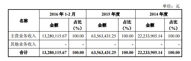 報(bào)告顯示,2014年、2015年和2016年1-2月,易第優(yōu)營(yíng)收分別為2223.39萬(wàn)元、6356.34萬(wàn)元和1328.01萬(wàn)元,凈利潤(rùn)分別是-234.17萬(wàn)元、135.85萬(wàn)元、-138.1萬(wàn)元,全部營(yíng)收均來(lái)自主營(yíng)業(yè)務(wù)。具體營(yíng)收如下表所示: