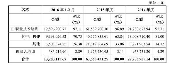 易第優(yōu)目前在針對(duì)成人的計(jì)算機(jī)技術(shù)培訓(xùn)方面,已培訓(xùn)學(xué)員近萬(wàn)名,其中PHP培訓(xùn)收入占公司總體收入70%以上;在針對(duì)幼兒及青少年機(jī)器人培訓(xùn)方面,則處于起步階段。兩類(lèi)培訓(xùn)占主營(yíng)業(yè)務(wù)收入比例如下圖所示: