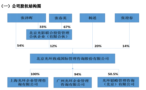 截至7月27日,光環(huán)國際全資擁有一家子公司上海光環(huán)企業(yè)管理咨詢有限公司,控股兩家子公司廣州光環(huán)企業(yè)管理咨詢有限公司(持股比例為94%)和光環(huán)韜略管理咨詢(北京)有限公司(持股比例為 50.5%),擁有一家子公司北京光環(huán)致成國際管理咨詢有限公司昌平分公司。