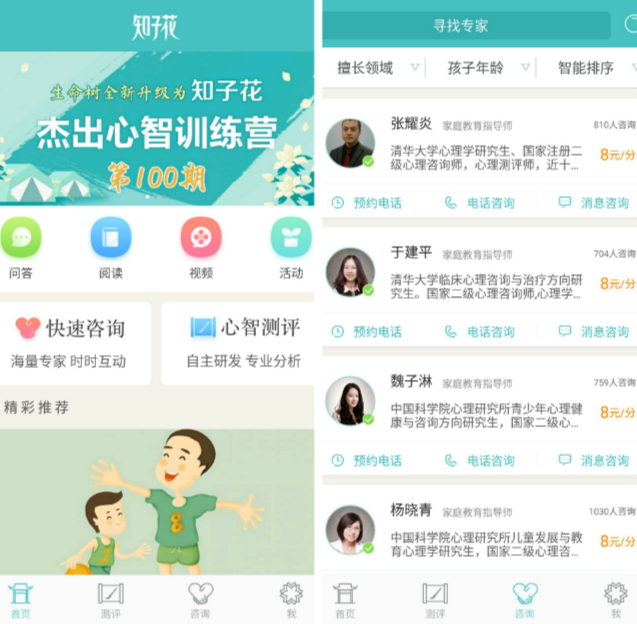 家長可以在知子花APP的問答專區(qū)提問,知子花咨詢師會(huì)根據(jù)家長的問題給予解答,家長若有更多問題,可以選擇知子花平臺(tái)的咨詢師進(jìn)行電話或消息咨詢,電話咨詢收費(fèi)為4-10元/分鐘。據(jù)了解,知子花與咨詢師的分成比例為50%。