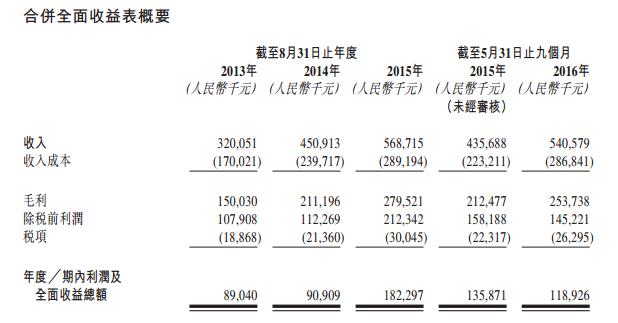 在2013年、2014年及2015年,睿見教育總營收分別為3.2億元、4.51億元及5.69億元,凈利潤為8900萬元、9090萬元和1.82億元,凈利潤率分別為27.8%、20.2%和32.1%。