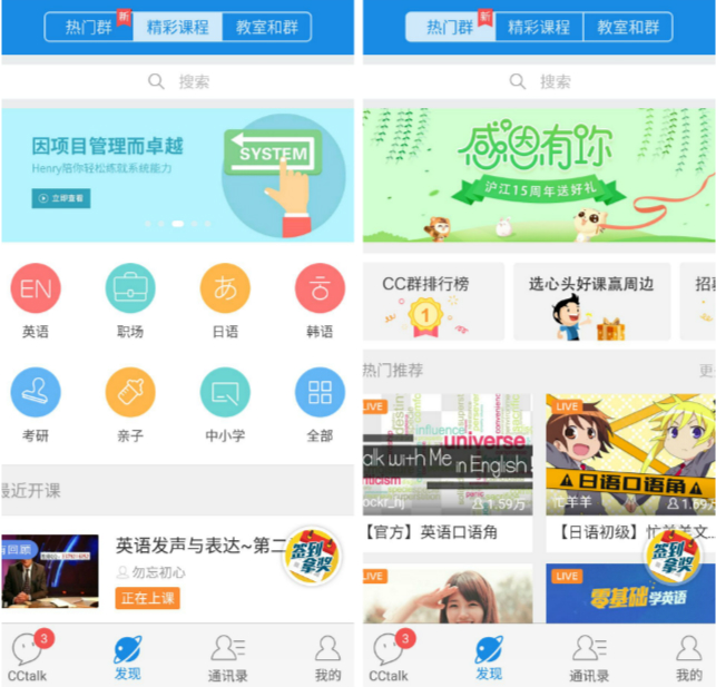 早在2012年,滬江網(wǎng)推出了CCtalk PC版,定位直播工具,服務(wù)于機(jī)構(gòu)、老師、同學(xué),支持實(shí)時公屏互動、即時課堂答題以及鮮花送名師等互動功能。