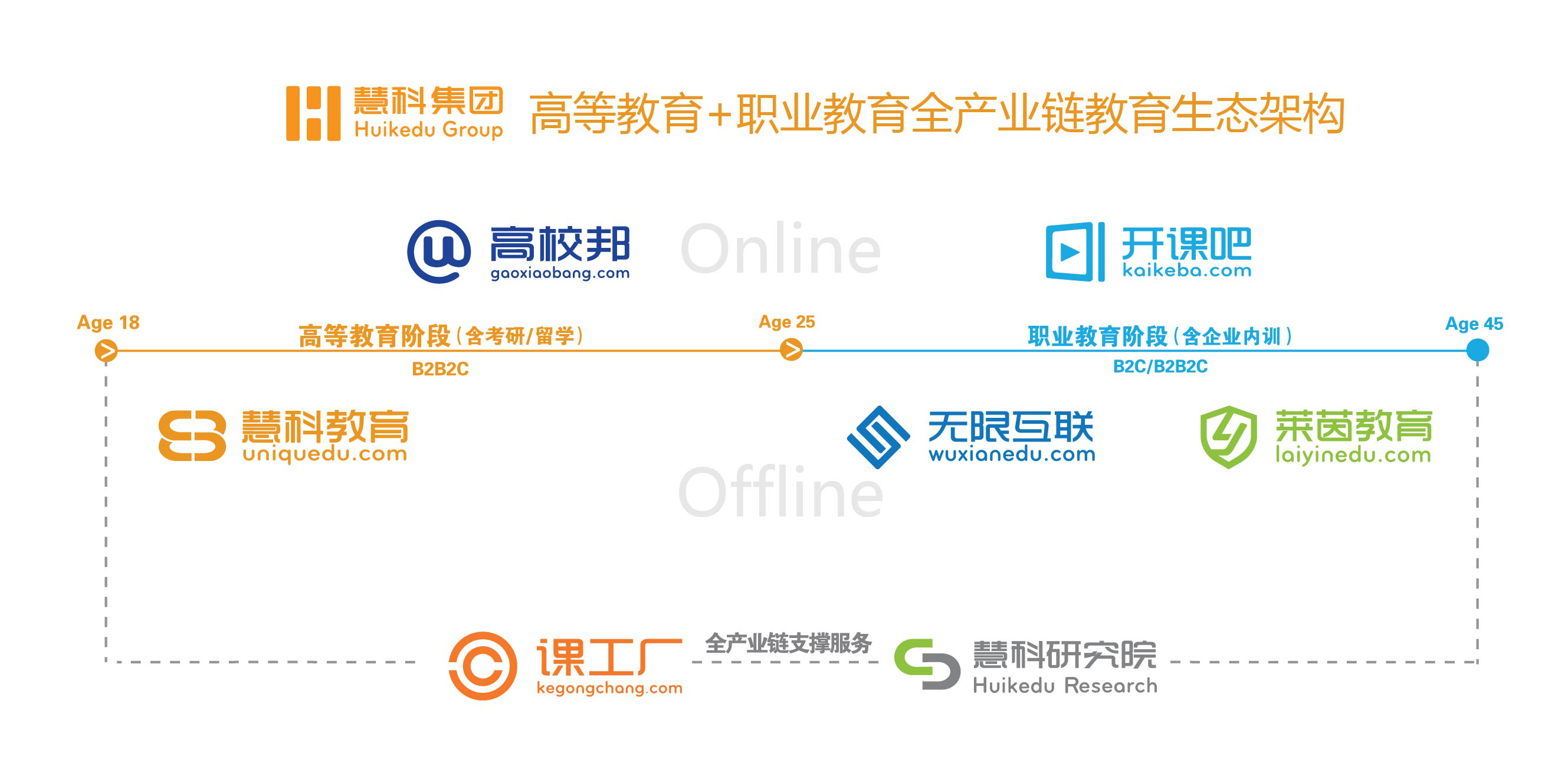 慧科集團(tuán)創(chuàng)始人、董事長方業(yè)昌透露,目前慧科集團(tuán)現(xiàn)在主要包括7塊業(yè)務(wù):生態(tài)支撐服務(wù)(慧科研究院、課工廠),高等教育事業(yè)群(高校邦、慧科教育),職業(yè)教育事業(yè)群(開課吧、無限互聯(lián)、萊茵教育)其中高教人員和職教人員比例約為1:1,至此慧科集團(tuán)正式形成高等教育事業(yè)及職業(yè)教育雙業(yè)教育模式。