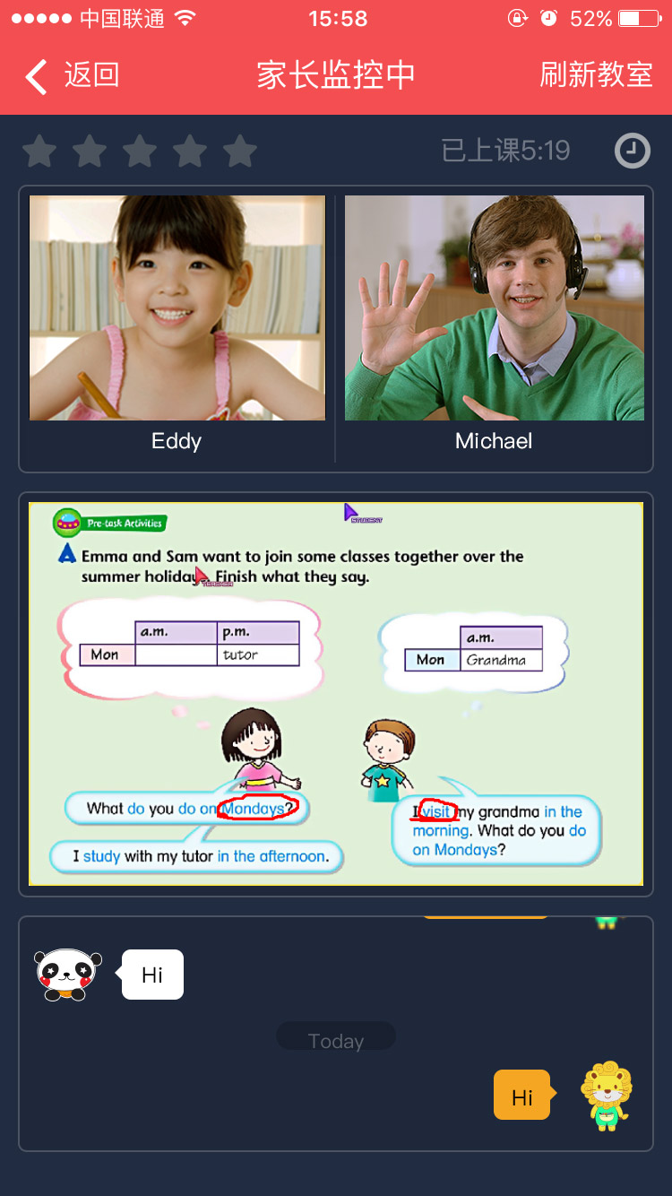 這個(gè)功能來自郅慧的親身經(jīng)歷,創(chuàng)業(yè)前,她的孩子也在上線下的英語(yǔ)機(jī)構(gòu)。“把孩子送去,然后一堆家長(zhǎng)在那刷手機(jī),等下課再把孩子接走?!臂せ壅f,“家長(zhǎng)無法掌握孩子上課的情況,只能從課后的交流中獲得一點(diǎn)來自孩子的反饋?!?/p>