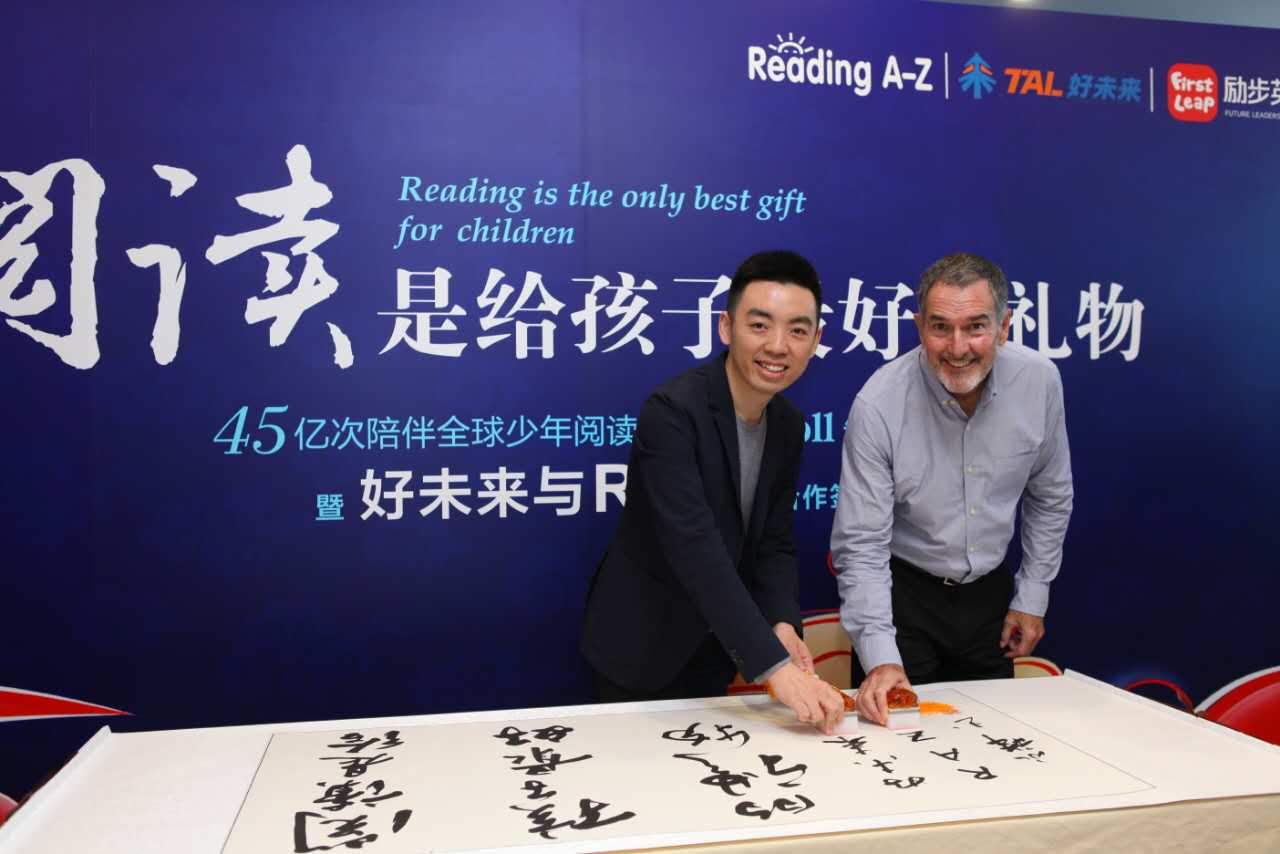 左為好未來聯(lián)合創(chuàng)始人白云峰、右為美國Reading A-Z創(chuàng)始人Bob