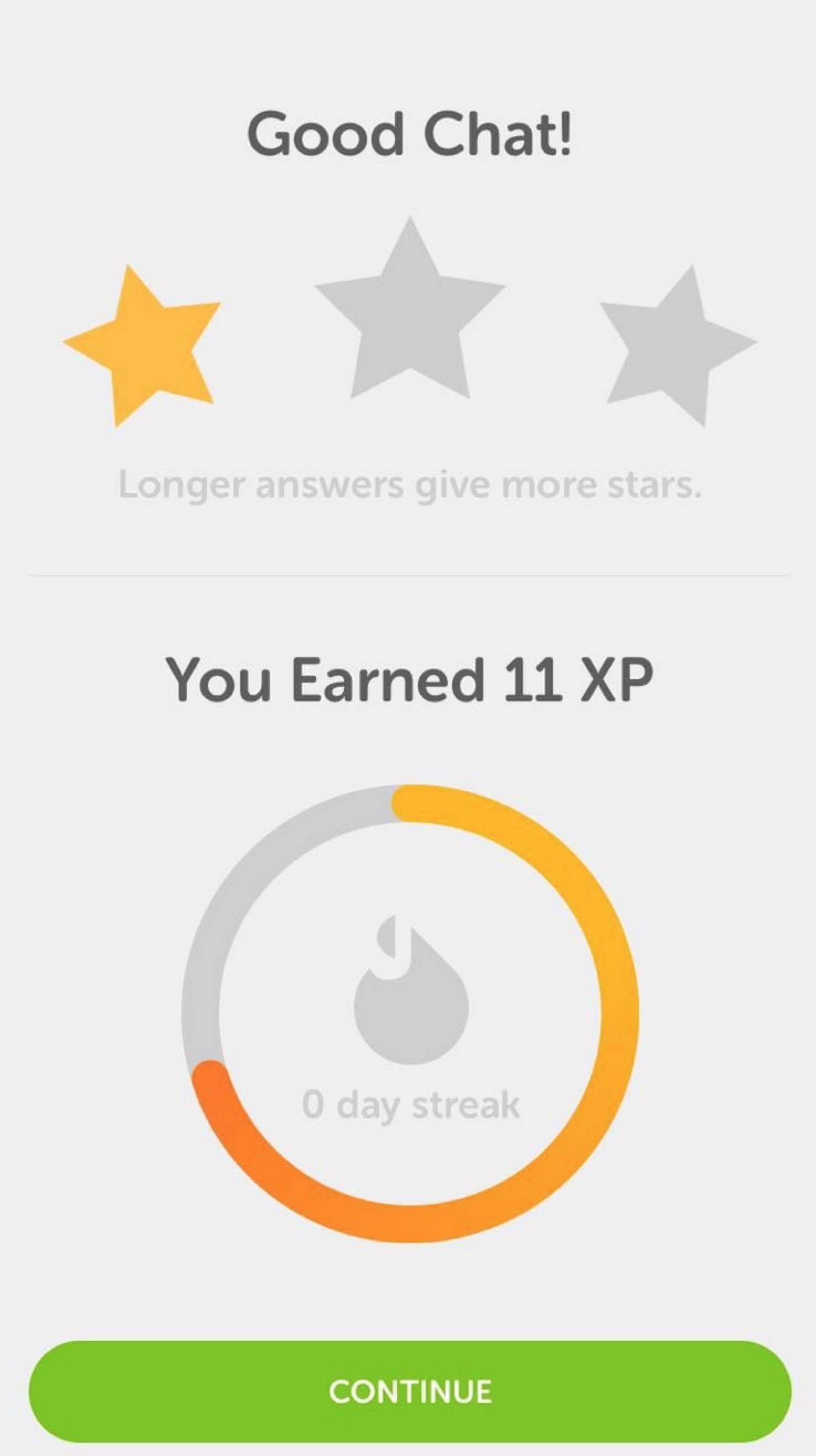 每段對話結(jié)束后,你就會得到一個(gè)系統(tǒng)的評分。比如在上面這段對話中我得到了三顆星中的一顆星,也就是說還需要繼續(xù)學(xué)習(xí)……
