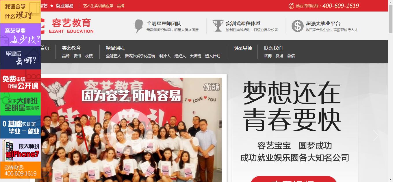容藝教育成立于2012年,由央視主持人李霞創(chuàng)辦并擔(dān)任CEO,主要提供藝術(shù)類專業(yè)職前教育培訓(xùn),所設(shè)專業(yè)包括全能藝人、娛樂營銷、制片人、真人秀節(jié)目編導(dǎo)、經(jīng)紀(jì)人、藝人助理等。