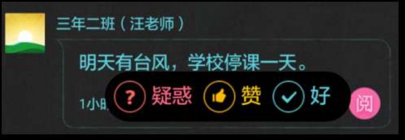 教師可以通過曉黑板的通知功能主動給家長發(fā)信息,家長無法回復(fù)文字,僅可選擇回復(fù)“打鉤”、“點贊”、“疑惑”三種來表達(dá)對這個通知的看法。