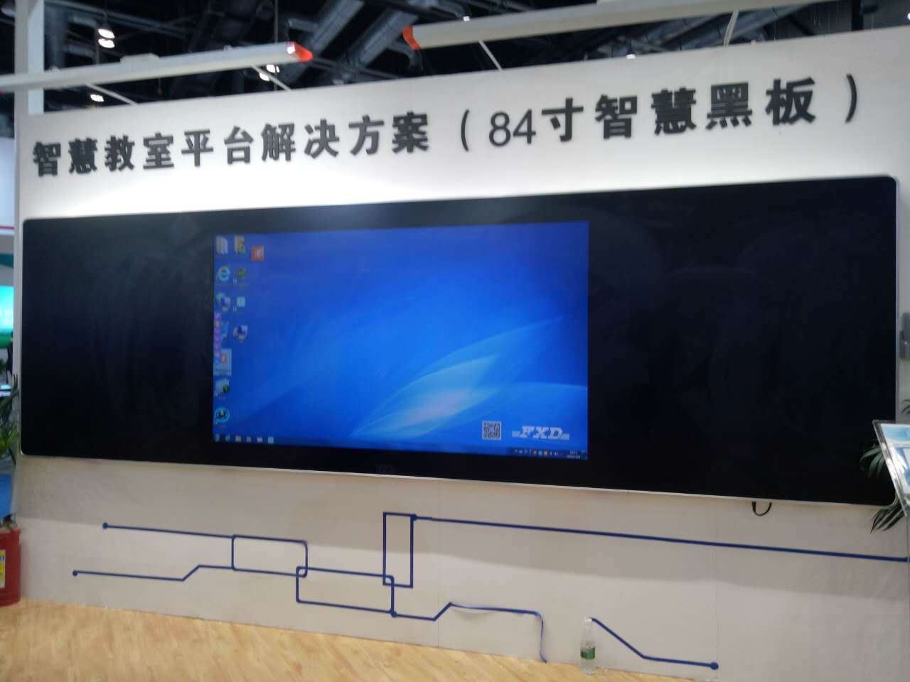 這是北京豐信達科技有限公司研發(fā)的產(chǎn)品,結(jié)合了互動觸控大屏電腦和傳統(tǒng)黑板兩者的功能特點。在顯示屏開啟狀態(tài)下,老師可在智慧黑板中央操作播放課件,兩邊板書;顯示屏關(guān)閉后,整個產(chǎn)品儼然一塊普通的黑板了,用粉筆即可書寫。