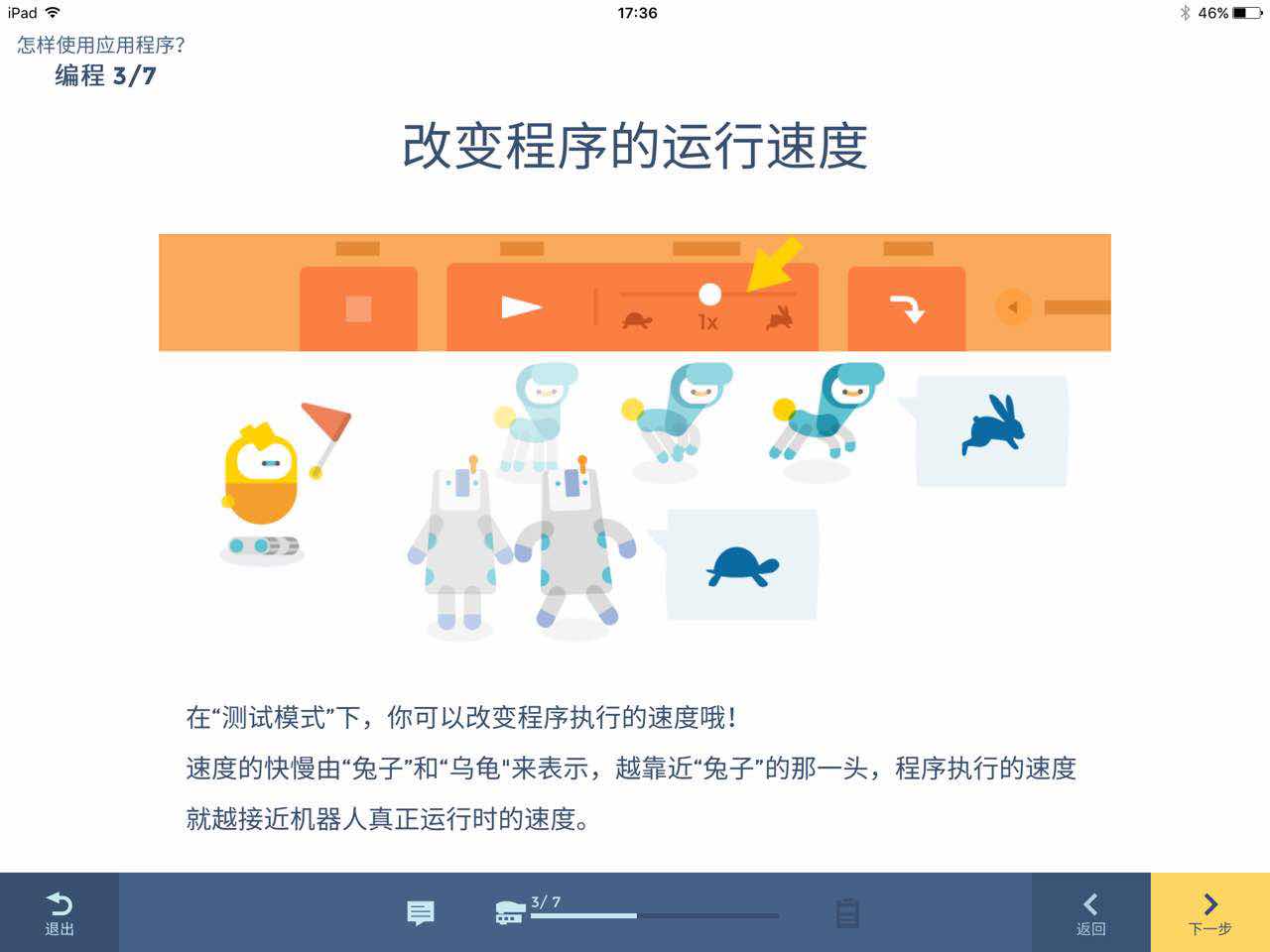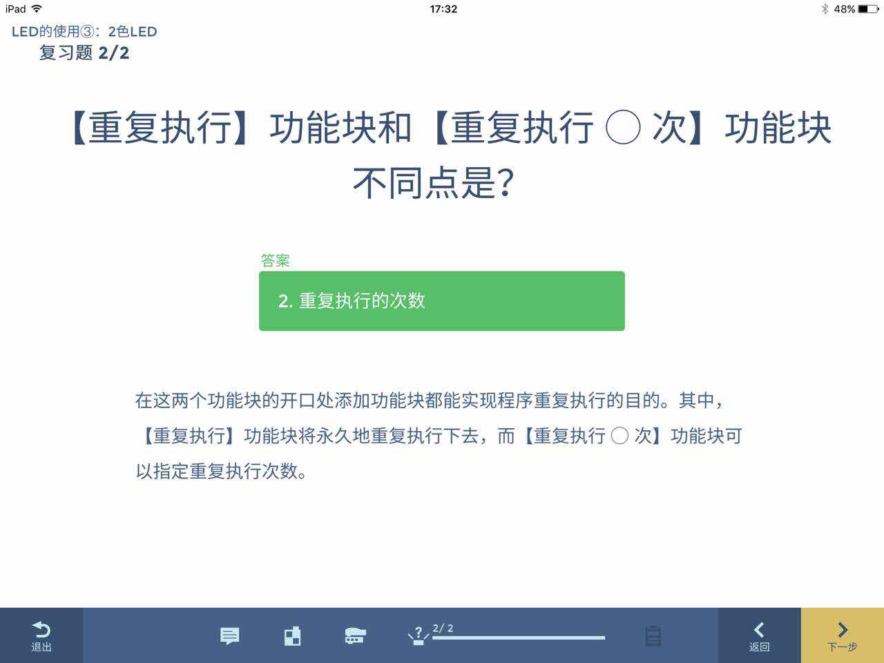 在剛開始自助編寫程序的之前,小助手機(jī)器人會通過視頻教學(xué)。用一步一步引導(dǎo)的方式,進(jìn)階性地對每一段代碼進(jìn)行理解,比如,如何讓燈泡亮起來,每一個程序指令意味著什么,讓孩子對編程有個初步的概念,并形成自己的認(rèn)識,在每次編程結(jié)束后,還會有一道小習(xí)題來考察小朋友對于知識的理解。