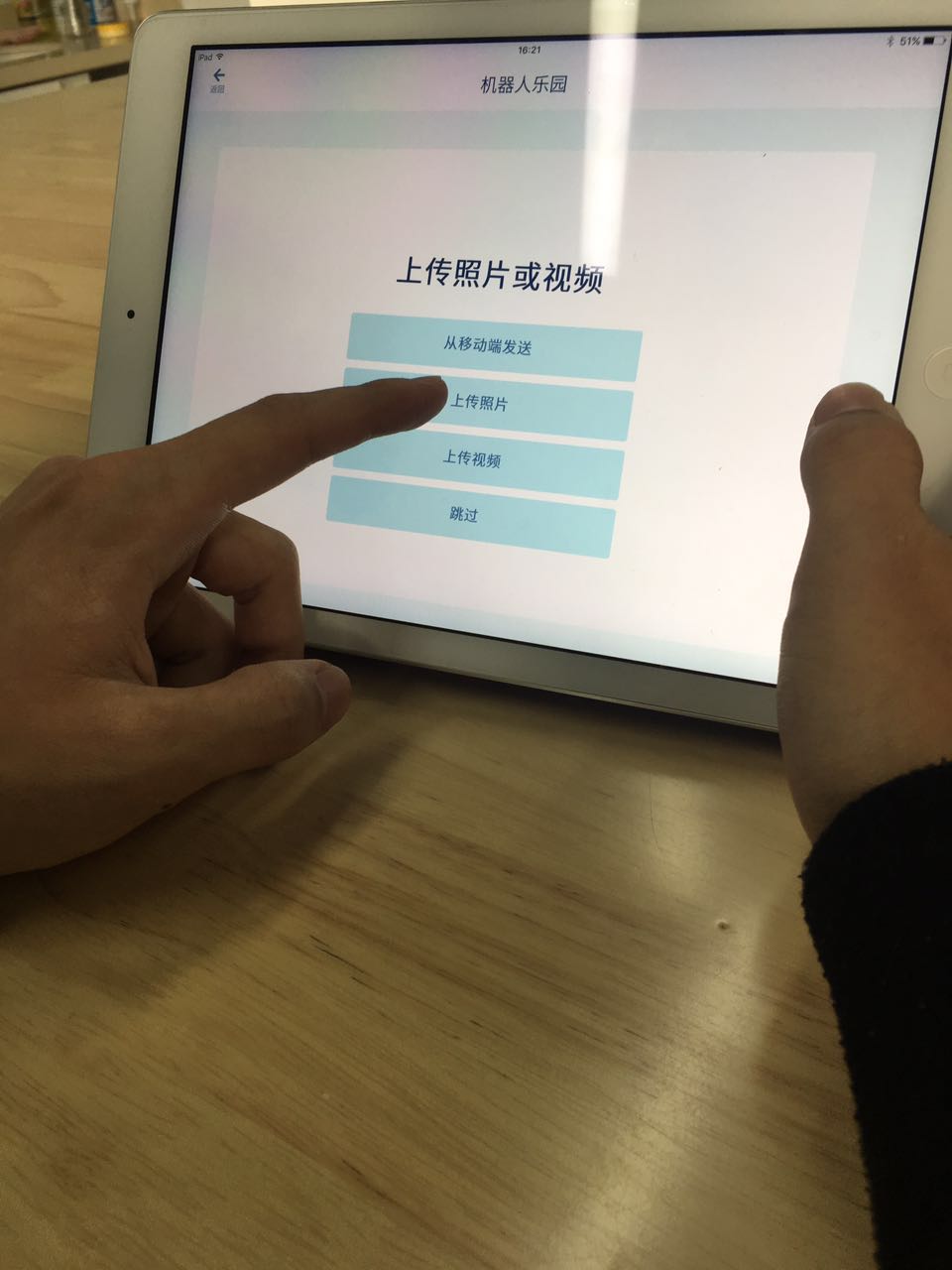 第一步,根據(jù)視頻的指導(dǎo),進(jìn)行拼接。KOOV上提供的視頻教程,設(shè)計了詳細(xì)的操作流程,立體地展示拼接方式,并且可以通過手指滑動pad屏幕多維度地觀察模塊的拼接形態(tài),這利于對培養(yǎng)孩子們的空間能力。