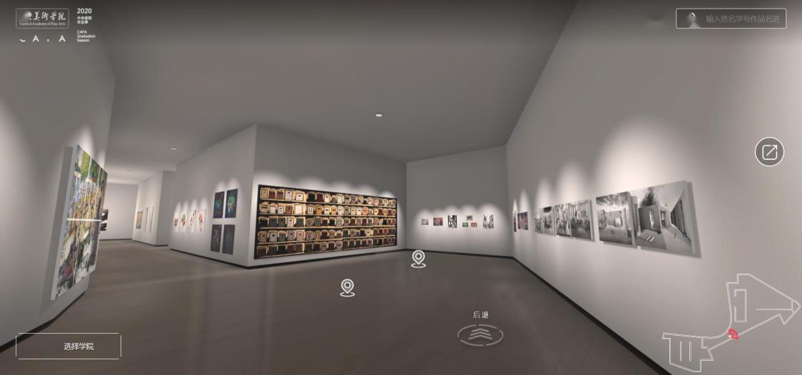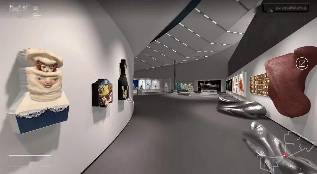 (中央美院使用網(wǎng)龍的技術支持為畢業(yè)展打造的“云端美院”虛擬美術館展廳內(nèi)部)