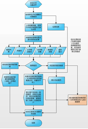 基于對現(xiàn)狀的分析和新產(chǎn)品的要求,筆者認(rèn)為新產(chǎn)品應(yīng)定位于幫學(xué)生作題減負(fù),即通過APP調(diào)用手機(jī)攝像頭掃描題干,上傳到云端進(jìn)行OCR識別后搜索匹配的答案和解題思路,反饋給用戶。