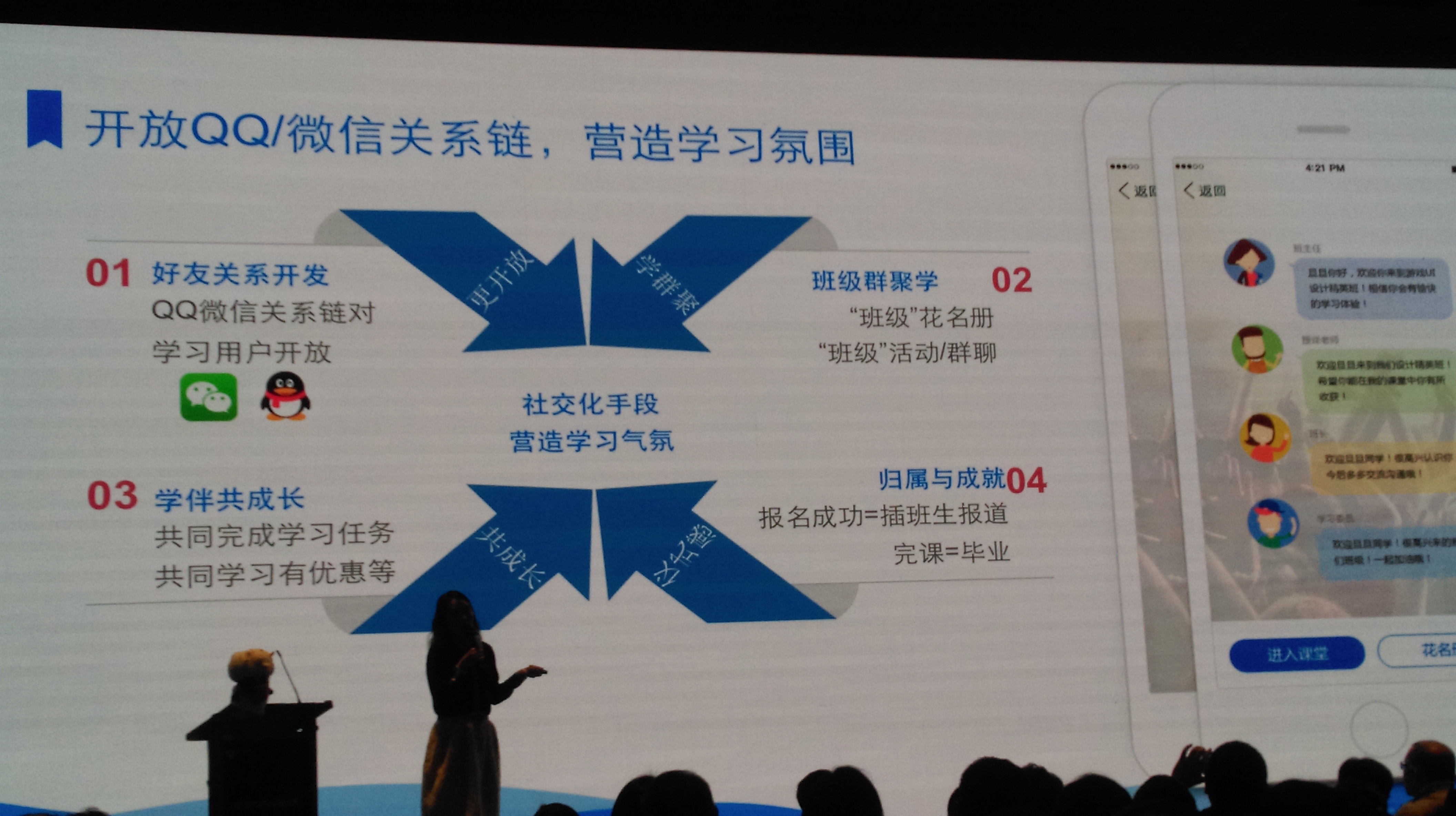 李倞在介紹騰訊課堂的2016年規(guī)劃時(shí)表示,2016年騰訊課堂將產(chǎn)品由重變輕,豐富產(chǎn)品發(fā)現(xiàn)場(chǎng)景,打造學(xué)習(xí)氛圍互助成長(zhǎng)。目前騰訊課堂 APP只是一個(gè)選課的工具,未來會(huì)增加學(xué)前的交流環(huán)節(jié)、咨詢環(huán)節(jié),學(xué)習(xí)后的社區(qū)互助練習(xí)等等。同時(shí)開放QQ、微信關(guān)系鏈,與教育微信公眾號(hào)合作。