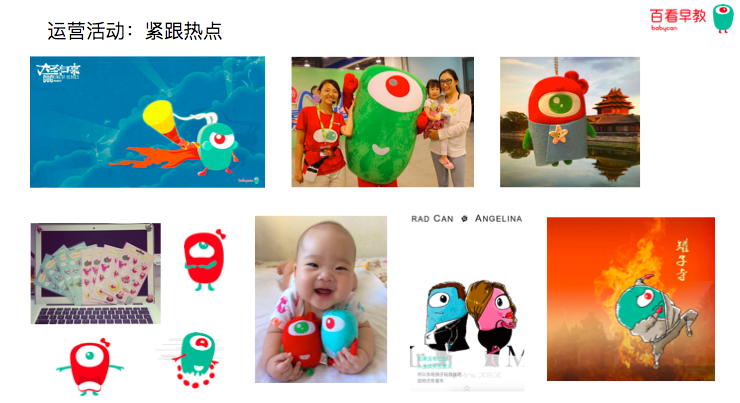 有了這個形象之后,它就被賦予了一定的人格化,進而建立了這個形象和用戶之間的情感的聯(lián)結(jié)。也就是說,我們天天記憶的不是百看早教,而是皮皮、皮小妹,皮皮爸和皮皮媽。每一個形象都有自己的性格和遇到問題時所做出的選擇,他就是我們生活當中常見的、平常和普通的人物。孩子可以在形象和故事當中找到自己,從而形成情感上的共鳴,而形成了情感共鳴之后才能賣東西,他才愿意看著這些形象出現(xiàn)在各種各樣的地方。