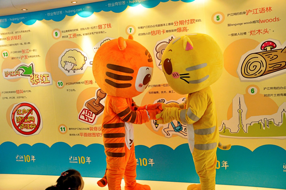 2011年,滬江建站十年。在十周年慶的滬友專場(chǎng)上,滬江的吉祥物CC貓和部落虎吸引了小朋友的目光。
