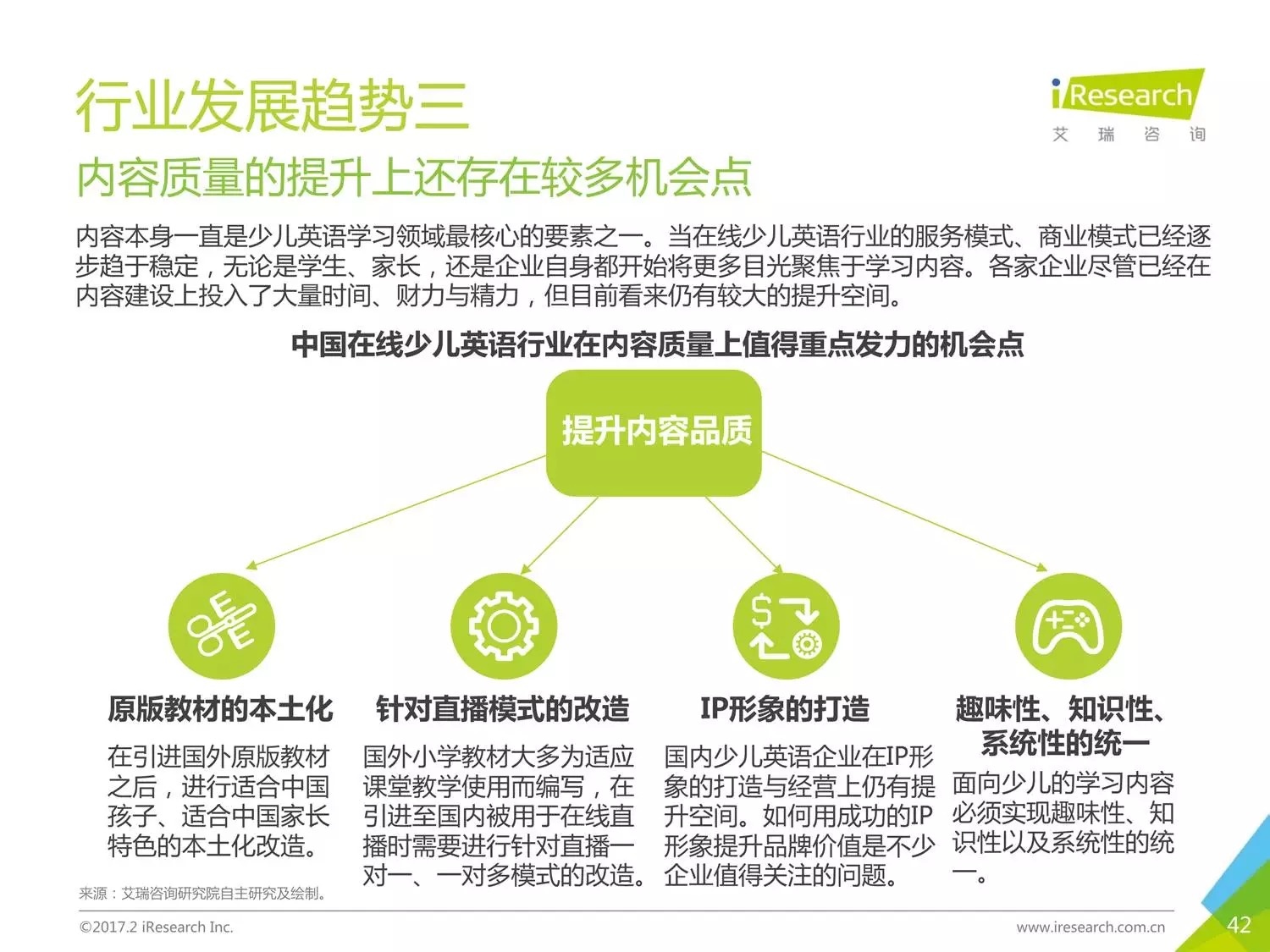 本報(bào)告以時(shí)下幾家比較受關(guān)注的公司為聚焦點(diǎn),闡述了現(xiàn)在線少兒英語(yǔ)的發(fā)展?fàn)顩r。