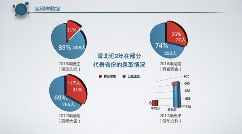 2017年,清華北大在河南省裸分錄取占比31%,自主選拔占69%;