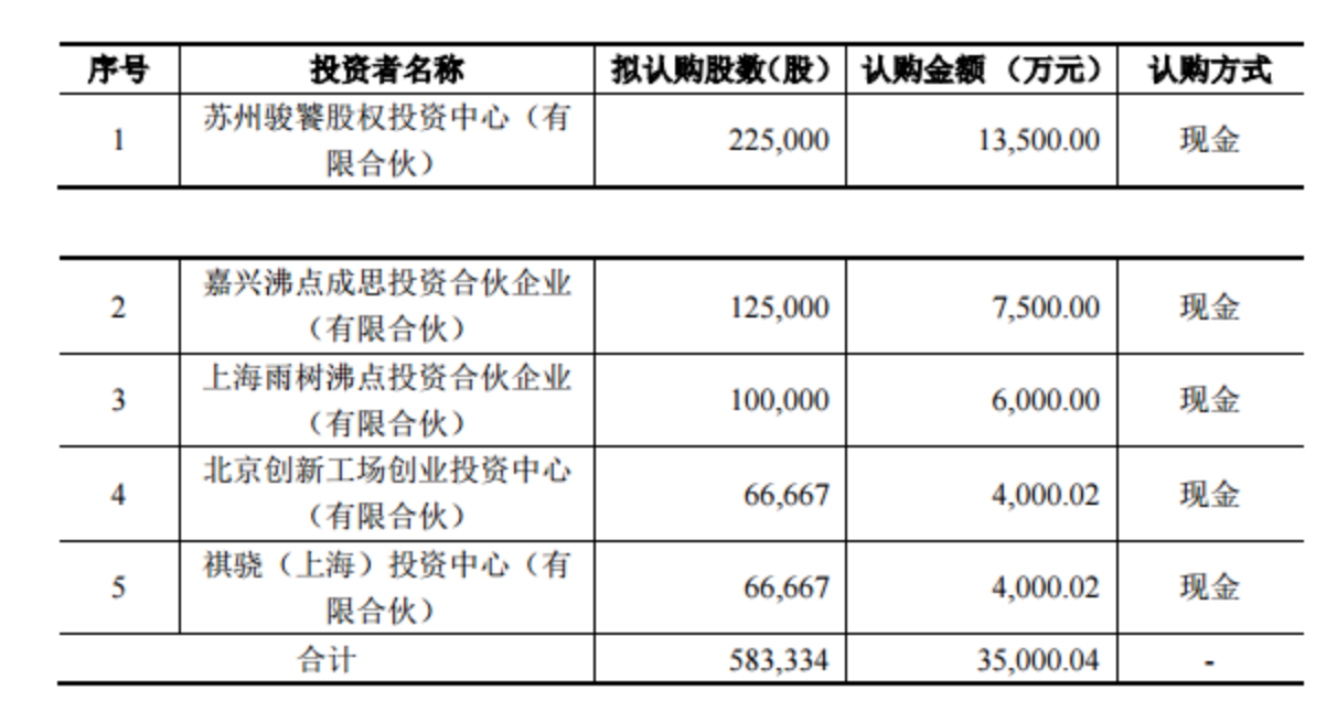 ?公告顯示,華人文化產(chǎn)業(yè)投資基金認購1.35億,沸點資本認購1.35億,創(chuàng)新工場認購4000.02萬,中金公司認購4000.02萬,新股合計3.5億。據(jù)了解,另外2億為購買老股。