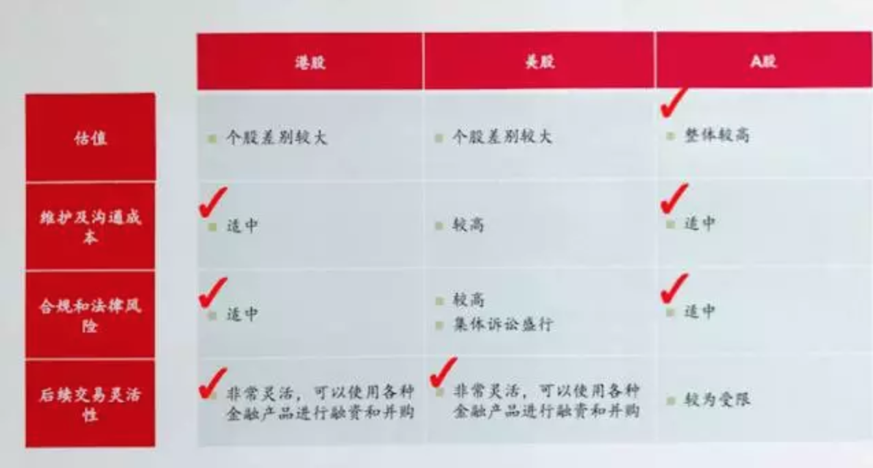 (港股、A股和美股上市比較)