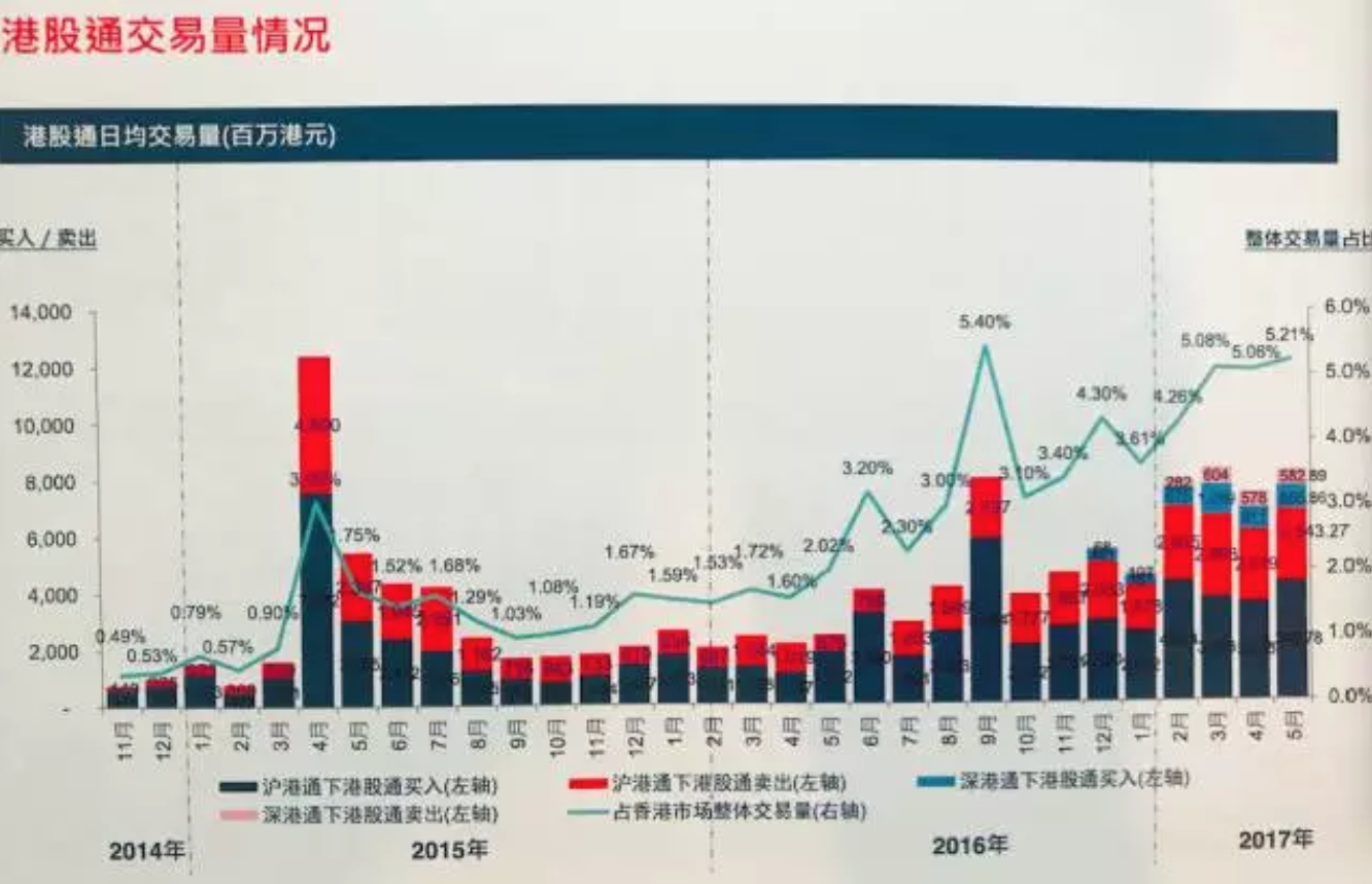 隨著港股通、深港通的開通,內地資金掀起了新一輪的南下投資熱潮。多知網(wǎng)獲悉的一份港交所數(shù)據(jù)顯示,內地資金已占整個港股交易量的5%以上,且在逐步上升。