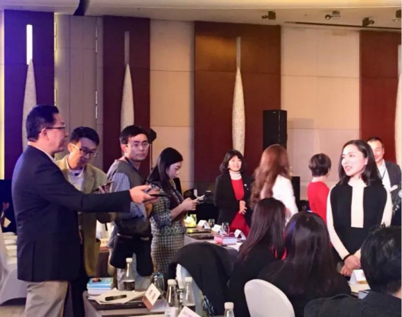 李陽帶來了很多詞典和關(guān)于瘋狂英語的宣傳冊。每當(dāng)有記者或者觀眾上前,李陽都會大方交談,并互加微信。