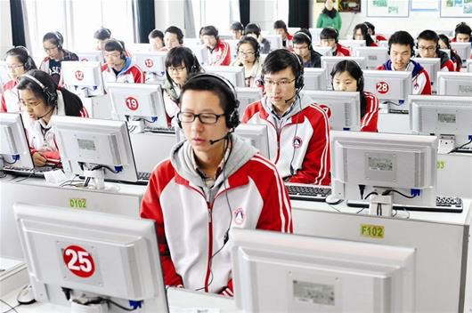 根據(jù)北京市2016年4月份公布的新中考改革方案,2018年,在英語科目中增設(shè)口語考試,一年兩考,與筆試分離,總分40分,占英語總成績的40%,滿分的學(xué)生將不再參加第二次口語考試。2017年12月23日,佳瑛與北京市6.5萬考生一起,進(jìn)行了首次口語機考。