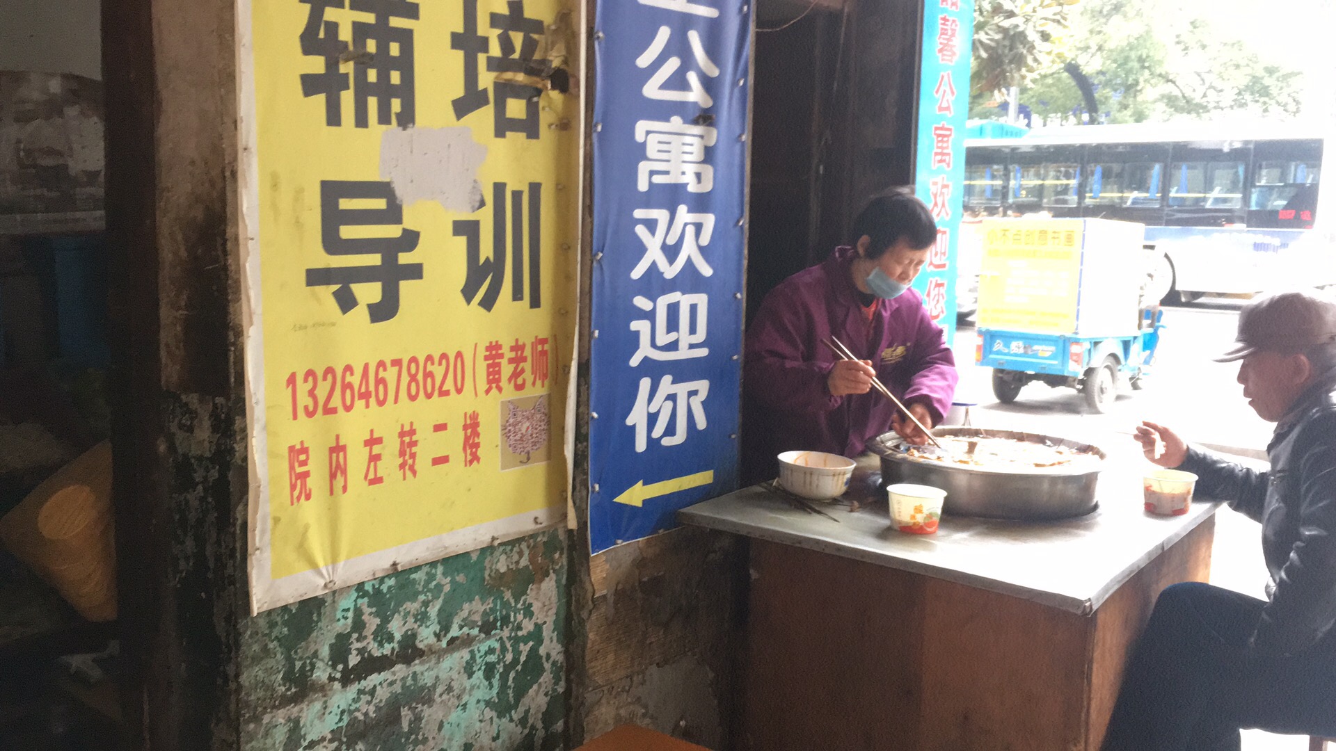 小攤在門口狹長的屋子里,婆婆的麻辣燙小鍋除了圍坐著食客,這幾年門的四周也被培訓機構(gòu)“占領(lǐng)”,筆者抬頭一望,上方一家K12機構(gòu),左邊一家藝術(shù)培訓機構(gòu),右邊一家陪學公寓的廣告,麻辣燙三個字,早已淹沒在廣告中。
