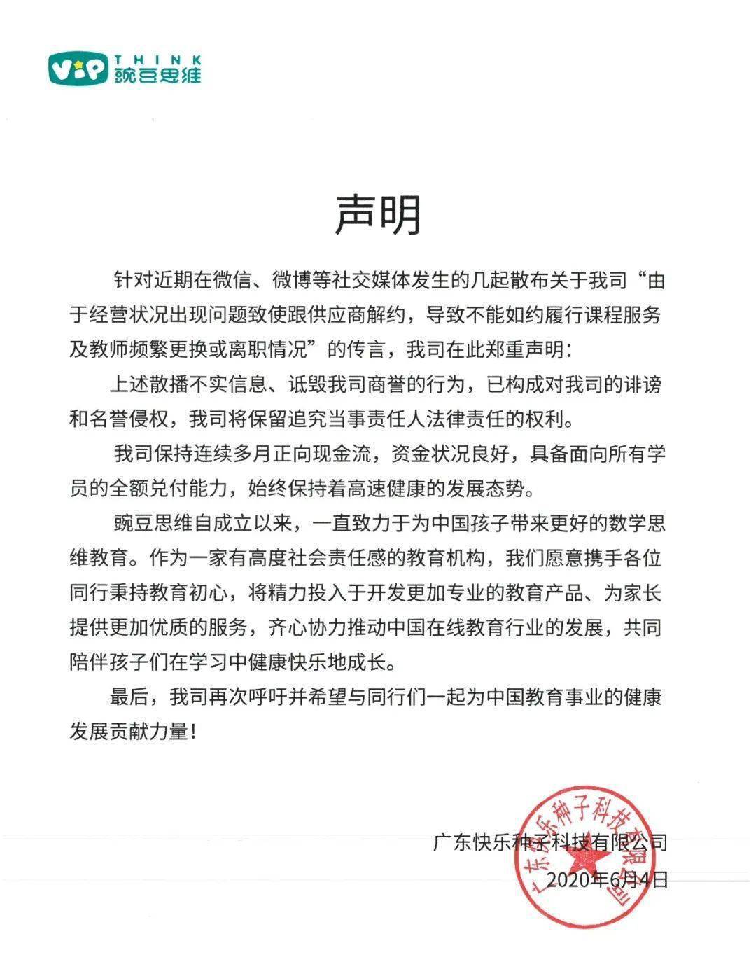 多知網(wǎng)6月4日消息,豌豆思維就近日社交媒體的幾起傳言發(fā)布聲明。