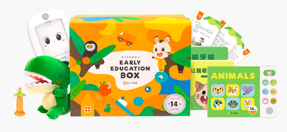 從產(chǎn)品具體形態(tài)來看,斑小馬早教的產(chǎn)品與斑馬AI課形態(tài)基本類似。教學(xué)產(chǎn)品主要包括實(shí)物玩具、學(xué)習(xí)機(jī)、繪本、早教卡、配套視頻等內(nèi)容,構(gòu)成一個(gè)禮盒。根據(jù)官方信息顯示,該禮盒每月寄送一次,其對應(yīng)早教內(nèi)容也會根據(jù)兒童的不同月齡進(jìn)行針對性調(diào)整。