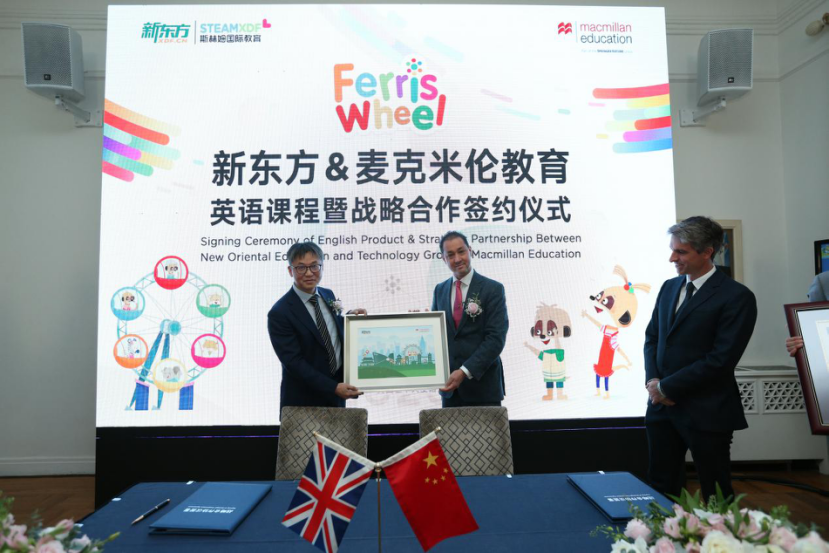 多知網(wǎng)10月29日消息,近日,麥克米倫教育(Macmillan Education)與新東方斯林姆國際教育戰(zhàn)略合作簽約儀式在英國駐華使館官邸舉行。在此次戰(zhàn)略合作中,以麥克米倫教育全新推出的幼兒旗艦教材“Ferris Wheel”為基礎(chǔ),結(jié)合新東方自主研發(fā)的多屏互動課件與課后在線練習(xí)系統(tǒng),推出以全人教育、情感教育為主的英文啟蒙課程。