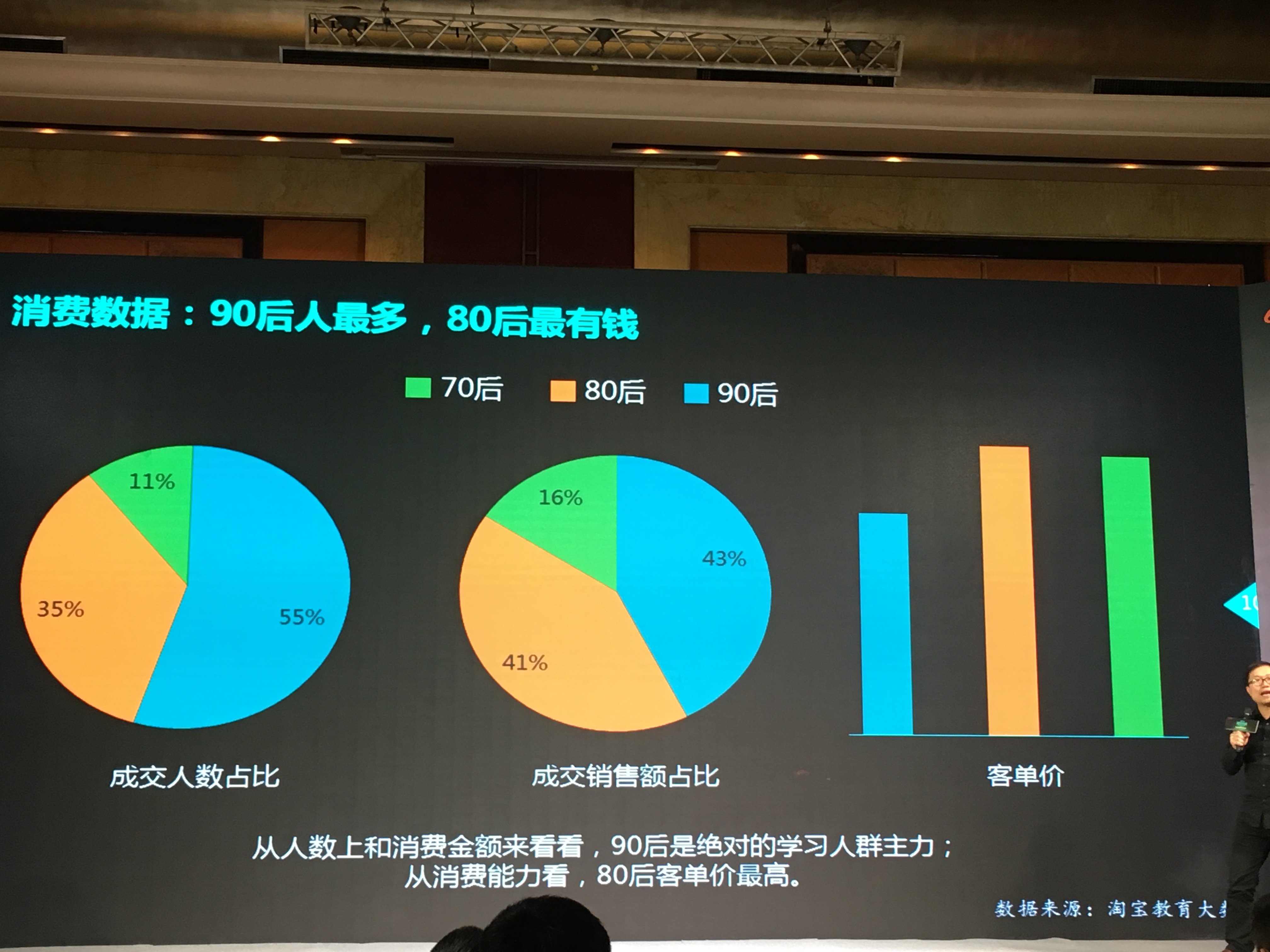 目前淘寶教育平臺(tái)上有240萬(wàn)的品牌教育機(jī)構(gòu),1700萬(wàn)的付費(fèi)用戶。今年雙十一期間,淘寶教育交易額比2015年增長(zhǎng)了264.5%。淘寶教育全年的交易額比2015年增長(zhǎng)了125.5%。