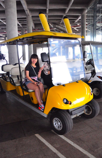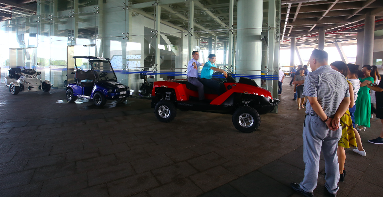 據(jù)說水陸兩棲車屬于私人物品,但運氣好的員工偶爾也能借出來在海邊沙灘上體驗一下“乘風(fēng)破浪”的感覺,一位網(wǎng)龍的同學(xué)從皮卡丘電瓶車上下來后與多知網(wǎng)交流道。