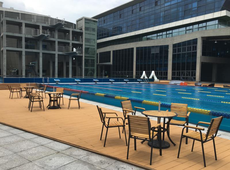 在室外運動設(shè)施中,體育場承擔(dān)了大多數(shù)的文體活動,除普遍的籃球、足球、羽毛球場地外,還有室外國際標(biāo)準(zhǔn)的泳道和跳水臺。網(wǎng)龍自配培訓(xùn)班和職業(yè)教練(據(jù)說很帥),保證職工的安全和專業(yè)學(xué)習(xí)。