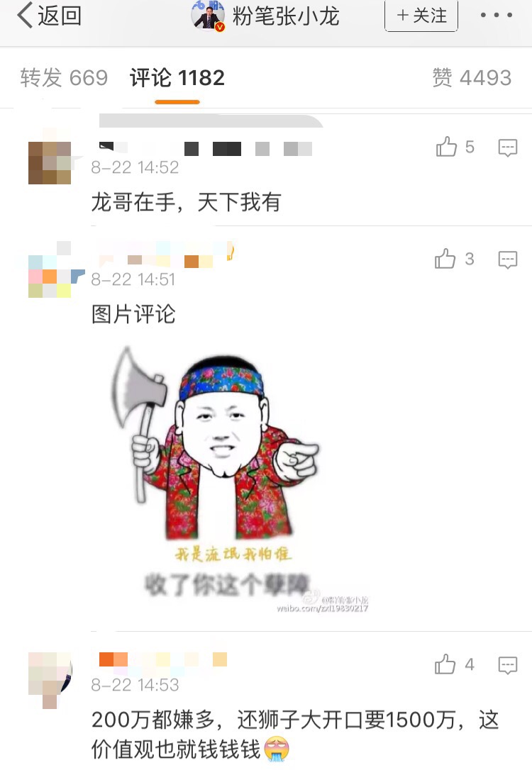 晚間11點左右,張小龍關注到,同他一起被投訴的自媒體“酷玩實驗室”表示自己沒有500萬。同張小龍的“1000萬是中等意思”相比,“500萬元對我來說是頂配”。