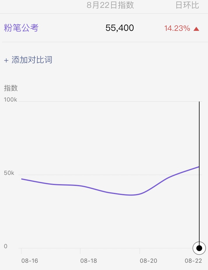 截止到23日7點,粉筆公考的百度指數(shù)和微信指數(shù)均有所上升。