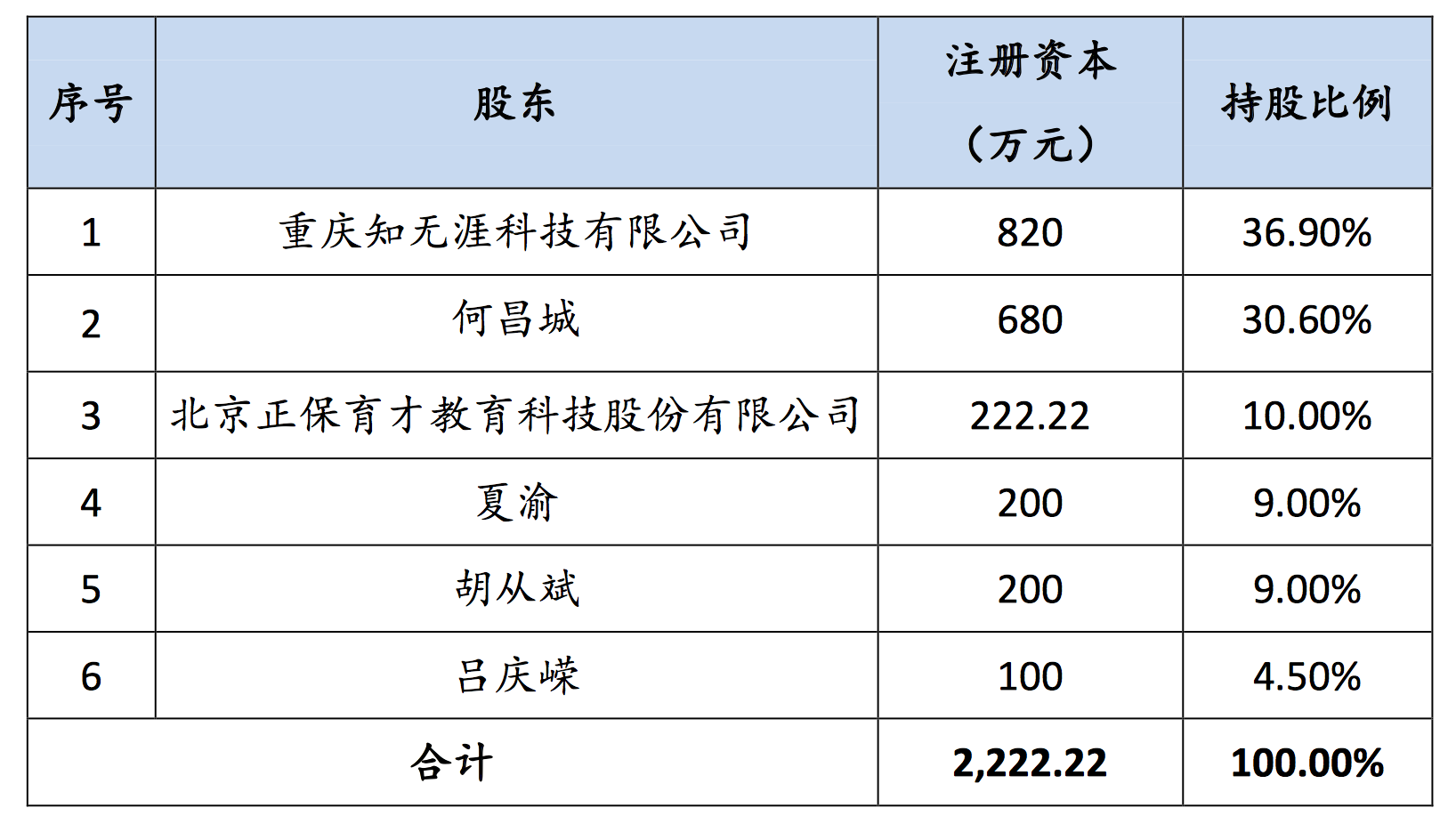 根據(jù)公告顯示,2017年2月28日,投資60萬元,與青創(chuàng)匯(北京)投資管理有限公司、自然人王鑫共同出資,設(shè)立北京創(chuàng)青春創(chuàng)未來教育科技有限公司,其中正保育才持股 60%。